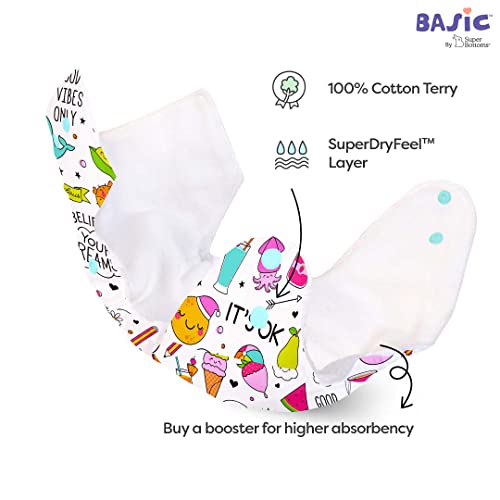 superbottoms Basic Cloth Diaper For Baby|Washable&Reusable Cotton Cloth Diaper|0-3 Years|Freesize|Adjustable|Reduces Rash|With 2 Quick Dry Pad/Insert|Doodles |