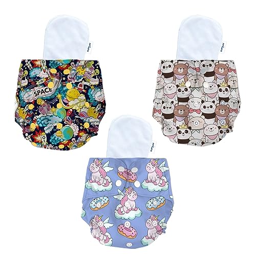 Bumtum Baby Diaper | 0-3 Yrs Baby Freesize | Pack of 3, New Born Baby Diaper, Cloth Diaper, Waterproof Reusable Diaper, 5hrs Absorbency, Washable, Cotton, Extra Soft (Unicorn, Teddy Face & Space Old)