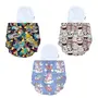 BUMTUM Cloth Diapers for Babies 0 to 3 Years | Pack of 3 with Inserts | Reusable Diaper for New Born Baby Cloth Diapers 5hrs Absorbency Freesize Washable Cotton(Unicorn Teddy Face & Space Old)