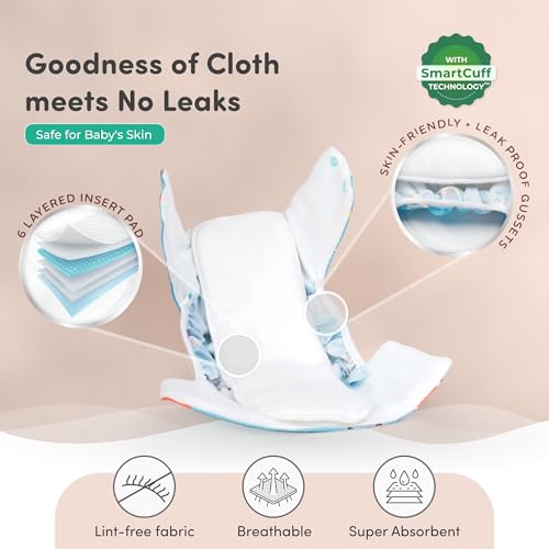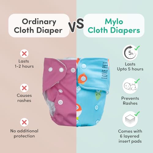 Mylo Leak-Proof Baby Cloth Diaper Combo (1 Diapers + 1 Inserts) | Free Size (3M-3Y) | High Absorption | Quick Dry | Oeko-Tex Certified | Washable - Pet Love