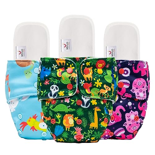 Mylo Leak Proof Baby Cloth Diaper Combo (3 Diapers + 3 Inserts) for 3 Months to 3 Years Babies | Oeko Tex Certified Washable & Reusable Baby Cloth Diaper | Free Size -Pet Lovejunglepurple Love