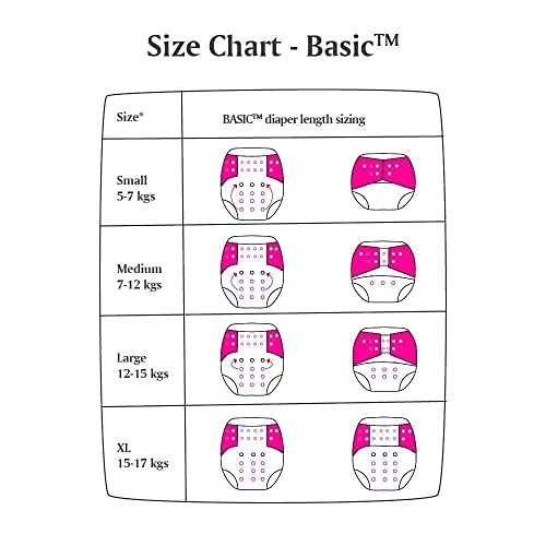 Adjustable Diaper that fits from 3 months - 3 years (5kg - 17kg) Contents Features - CPSIA (US) certified cloth diapers. Tested-free for lead and phthalates. - Waterproof washable & reusable cloth diaper that fits babies from 3 months to 3 years. - It lasts up to 5 hours for average wetting babies. - Keeps the baby dry and comfortable.