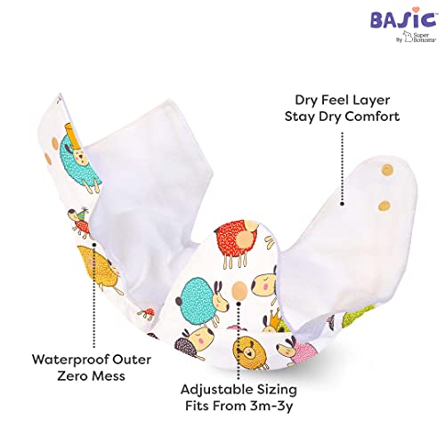 WATERPROOF ADJUSTABLE FREESIZE REUSABLE - Basic cloth diapers fit babies from 5kgs to 17kgs. You can easily adjust the size of the diaper to Small/Medium or Large/Extra Large depending on your baby's weight by snapping the buttons in the front. This helps
