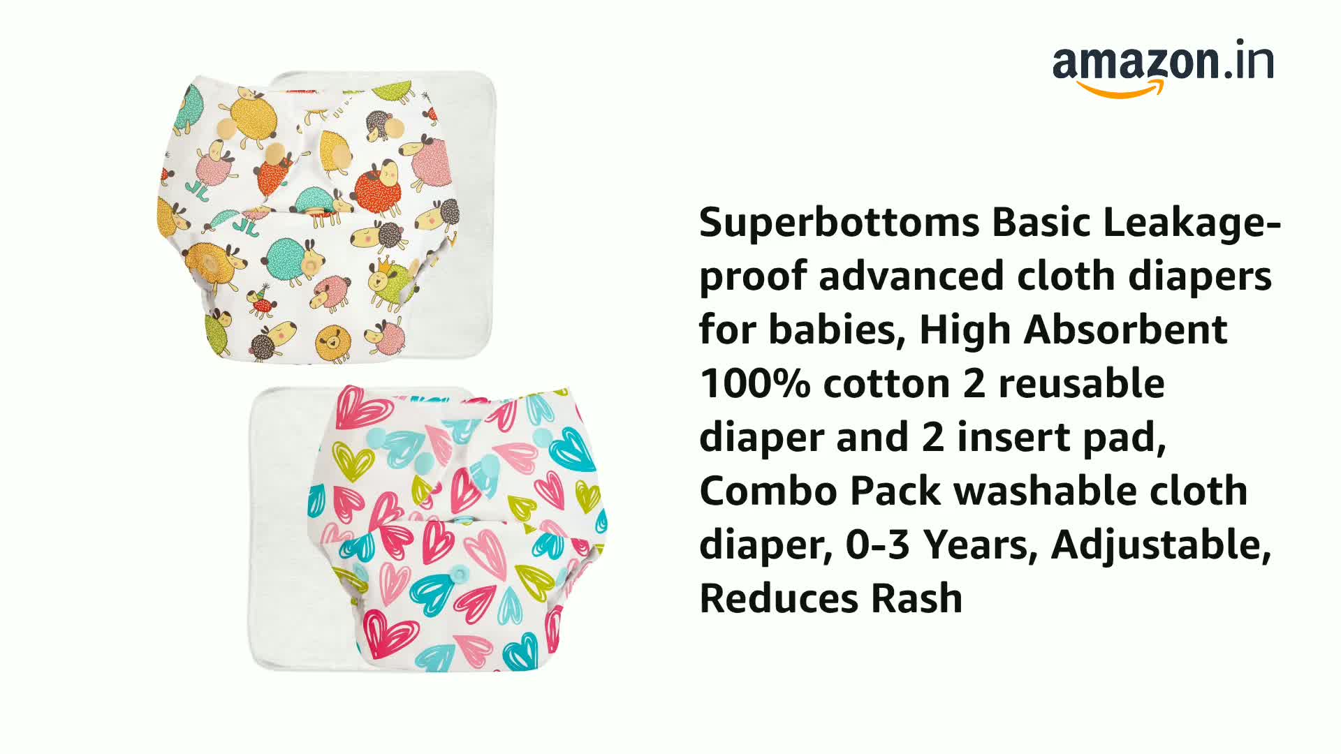 SuperBottoms BASIC Assorted Pack of 2 CPSIA Certified Cotton Cloth Diapers For Baby | Washable & Reusable | 0-3 Years | Freesize | Adjustable | Reduces Rash | With Quick Dry Pad/Insert