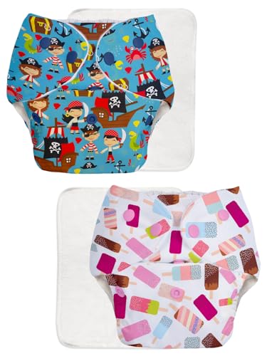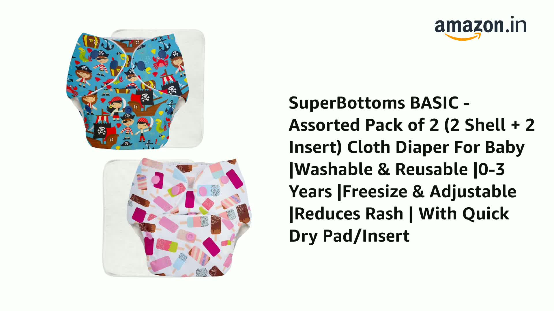 SuperBottoms BASIC - Assorted Pack of 4 (2 Shell + 2 Insert) Cloth Diaper For Baby |Washable & Reusable |0-3 Years |Freesize & Adjustable |Reduces Rash | With Quick Dry Pad/Insert