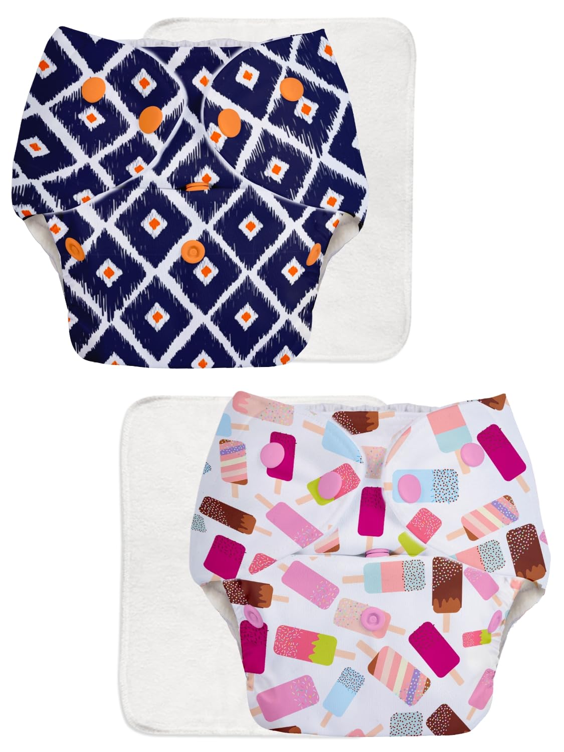 superbottoms BASIC - Assorted Pack of 4 (2 Shell+2 Insert) Cloth Diaper For Baby |Washable & Reusable Cotton Cloth Diaper | 0-3 Years | Freesize | Adjustable | Reduces Rash |With Quick Dry Pad/Insert
