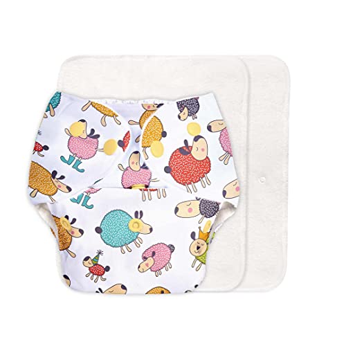 SuperBottoms BASIC Cloth Diaper For Baby | Washable & Reusable Cotton Cloth Diaper | 0-3 Years | Freesize | Adjustable | Reduces Rash | With 2 Quick Dry Pad/Insert | Sheep |
