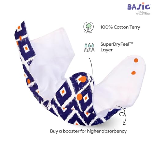 HomeBabyDiaperingCloth DiapersSuperBottoms BASIC Pack of 7 Cloth Diapers for Babies l New Trimmer Version l Adjustable & Washable Cotton Diaper l Rash Free Reusable Diaperl Comes with a Quick Dry Pad l 3M - 3Y | 5-17kgs