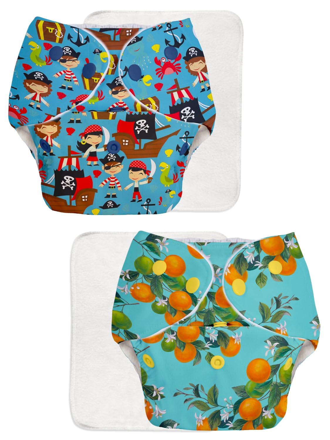 SuperBottoms BASIC - PACK OF 2-2 Certified Soft Fleece Lined Freesize Adjustable and Reusable Cloth Diaper for babies 0-3 Years | Cloth Diaper for babies with 2 inserts with snaps (Assorted 7)