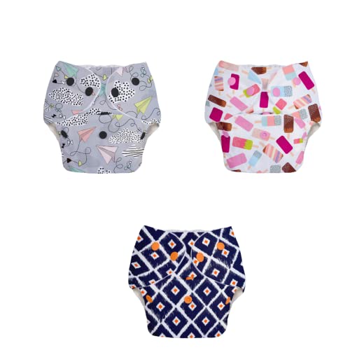 superbottoms BASIC Pack of 3 Assorted Cloth Diaper for babies 0-3 Years | Freesize Adjustable Washable and Reusable Cloth Diaper | Outer Shell only | (WITHOUT dry feel pad/soaker/insert) |