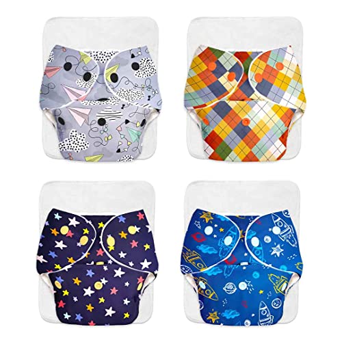 SuperBottoms BASIC Pack of 4 Freesize Adjustable Washable and Reusable Cloth Diaper for babies 0-3 Years | One Size Adjustable Diapers (Pack of 4 diapers+ 4 inserts) Assorted prints