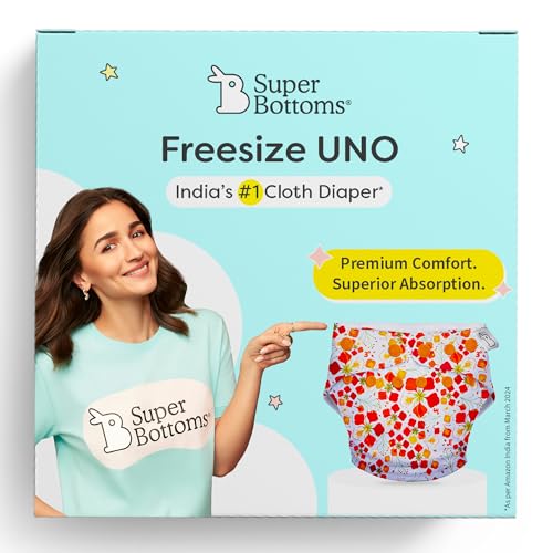 HomeBabyDiaperingCloth DiapersSuperBottoms Combo Pack of 2 Freesize UNO - Reusable waterproof Adjustable cloth diaper for babies from 5-17kgs with Dry feel Organic cotton Pad-Option 7