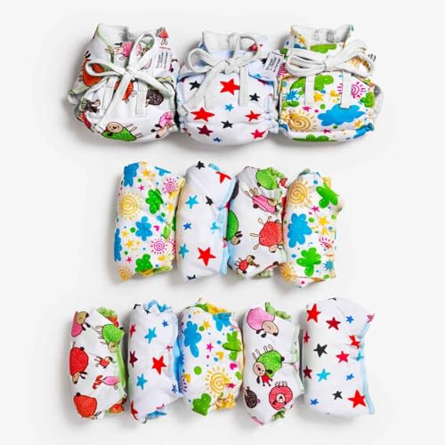 SuperBottoms Dry Feel Langot - Pack of 12- Organic Cotton Padded Baby Nappy/Langot with Gentle Elastics & a SuperDryFeel Layer on Top (Size 2 (Fits 5-10 kg) Printed)