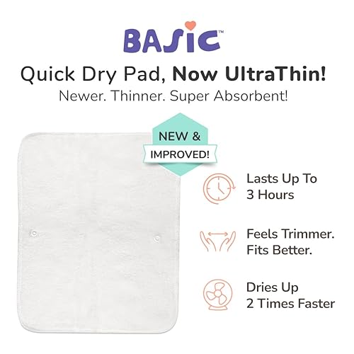 ULTRATHIN SUPER ABSORBENT QUICK DRYING - The New and improved Quick Dry UltraThin Pads are foldable style 4 layered pads which can be attached to the cloth diaper. It's UltraThin Design is light for the baby fits better and looks trimmer. It dries 2 times