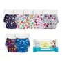 SuperBottoms FREE Wipes - 72 Pack with 7 BASIC Reusable Cloth Diaper with NEW Quick Dry UltraThin pads - Pack of 7| Freesize Diapers for baby 0-3 Yrs|Lasts up to 3Hrs|(7 Shell + 7 Pads) - Assorted