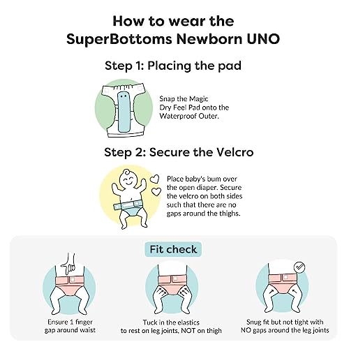 SKIN-FRIENDLY ECO-FRIENDLY & POCKET-FRIENDLY: SuperBottoms Newborn UNO Cloth Diaper is made from 100% Organic Cotton Pads (diaper inserts) with SuperDryFeel Layer that keeps babys bums dry and helps in reducing rashes significantly. It is a washable and r