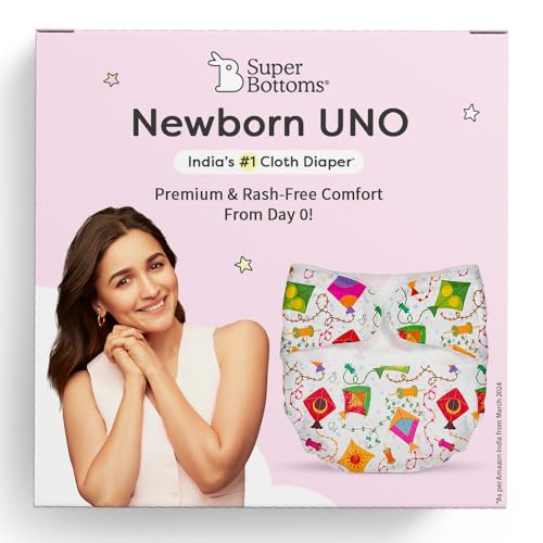 SuperBottoms Newborn UNO: Premium & Rash-Free Comfort From Day 0!Perfect for newborns weighing 2.57 kg (0 to 3 months).Introducing the SuperBottoms Newborn UNO a reusable and washable cloth diaper designed for your newborns comfort.This diaper is made from all-natural materials and contains no harmful chemicals making it the gentlest choice for your babys delicate skin. It gives you the convenience of a disposable diaper while keeping the benefits of cloth perfect for busy parents!The Newborn UNO has a soft waterproof outer layer made from velvety soft fabric and comes with a Dry Feel Magic Pad. Made from GOTS Certified 100% Organic Cotton it can absorb 4-5 pees keeping your newborn dry and comfy. Plus the Velcro closure makes it easy to put on and adjust!The special SuperDryFeel layer on top keeps your babys bum nice and dry even after they pee on it. Its designed for newborns up to 3 months old fitting babies weighing between 2.5 kg and 7 kg.Certified by CPSIA and OEKO-TEX the diaper is gentle on your babys sensitive skin.Loved by over 20 Lakh+ parents and recommended by paediatricians SuperBottoms is committed to giving your baby the best care without compromise.Note: Give them a wash before using for the best results!The Dry Feel Magic Pad may come with either a blue or white SuperDryFeel layer depending on whats in stock. But dont worryits performance will be just as great keeping your baby dry and comfy!