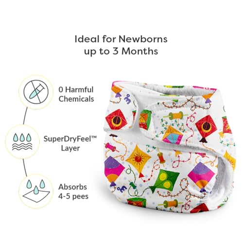 SuperBottoms Newborn UNO Premium Cloth Diaper with Insert (0 to 3m) | Washable & Reusable Diaper with Organic Cotton Pad | Superior Absorption | Waterproof | SuperDryFeel™ Layer | Super Soft & Gentle