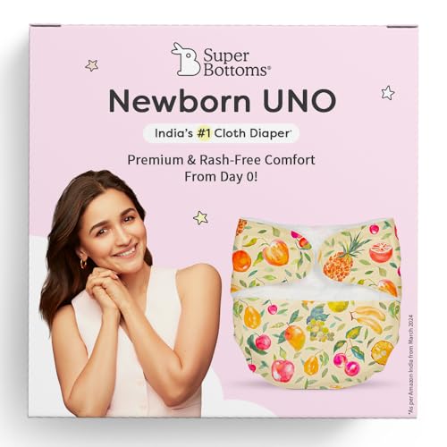 SuperBottoms Newborn UNO: Premium & Rash-Free Comfort From Day 0!Perfect for newborns weighing 2.57 kg (0 to 3 months).Introducing the SuperBottoms Newborn UNO a reusable and washable cloth diaper designed for your newborns comfort.This diaper is made from all-natural materials and contains no harmful chemicals making it the gentlest choice for your babys delicate skin. It gives you the convenience of a disposable diaper while keeping the benefits of cloth perfect for busy parents!The Newborn UNO has a soft waterproof outer layer made from velvety soft fabric and comes with a Dry Feel Magic Pad. Made from GOTS Certified 100% Organic Cotton it can absorb 4-5 pees keeping your newborn dry and comfy. Plus the Velcro closure makes it easy to put on and adjust!The special SuperDryFeel layer on top keeps your babys bum nice and dry even after they pee on it. Its designed for newborns up to 3 months old fitting babies weighing between 2.5 kg and 7 kg.Certified by CPSIA and OEKO-TEX the diaper is gentle on your babys sensitive skin.Loved by over 20 Lakh+ parents and recommended by paediatricians SuperBottoms is committed to giving your baby the best care without compromise.Note: Give them a wash before using for the best results!The Dry Feel Magic Pad may come with either a blue or white SuperDryFeel layer depending on whats in stock. But dont worryits performance will be just as great keeping your baby dry and comfy!