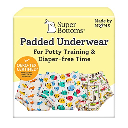 superbottoms Padded Underwear¢ | for Potty Training & Mess-Free Diaper-Free time | Prevents Pee Puddles | 3 Layers of Premium Cotton Padding (No Sponge) | Pull-up Style Potty Trainers- (Pack of 3)