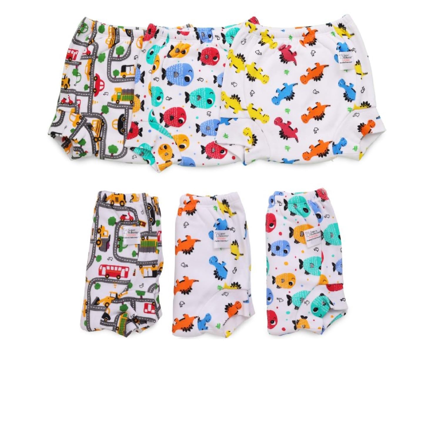 SuperBottoms Padded Underwear¢ | For Potty Training & Mess-Free Diaper-Free time | Prevents Pee Puddles | 3 layers of Premium Cotton Padding (No sponge) | (Striking Whites Size: 0 Pack of 6)