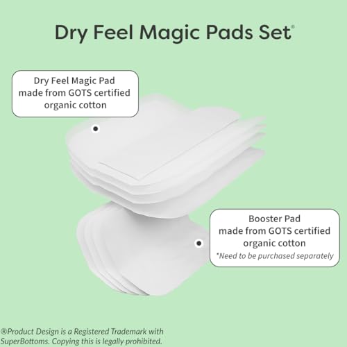 • Diaper Consistes of 1 Waterproof Outer and 1 Magic Dry Feel Pad Magic Dry Feel Main Pad consists of 9 layers (after folding) of GOTS Certified 100% Organic Cotton with a MagicDry layer on top to keep your babys bum dry