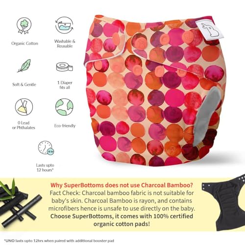 Skin-Friendly Eco-Friendly & Pocket-Friendly: SuperBottoms Freesize UNO Cloth Diaper is made from 100% Organic Cotton Pads which serve as diaper inserts. With its Super DryFeel Layer it keeps your baby's bums dry and helps prevent rashes. Being washable a