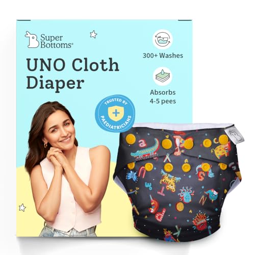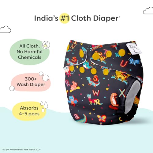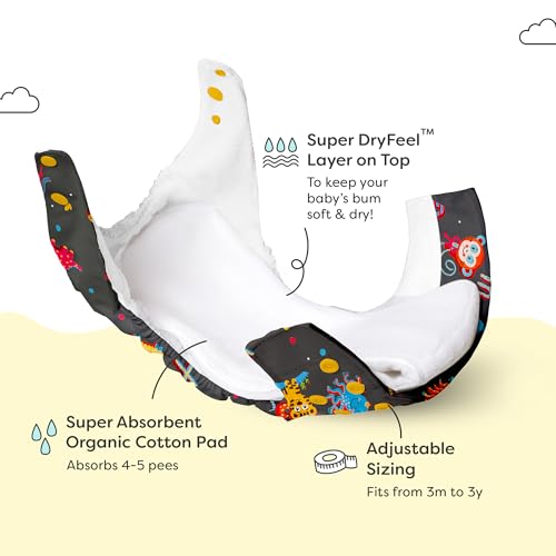 SuperBottoms UNO Freesize Cloth Diaper | Cloth diaper for babies 3M to 3Y | Washable & Reusable cloth diaper | Comes with cloth diaper inserts | 1 Organic cotton Soaker + 1 Booster A for Animal