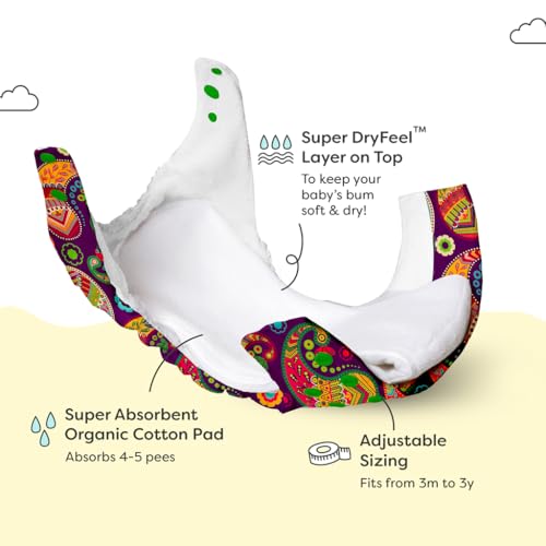 SuperBottoms UNO Freesize Cloth Diaper with Extra Booster| Pack of 2 (1 Waterproof Outer + 1 Organic Cotton Dry Feel Magic) Cloth diaper for babies 3M to 3Y| Comes with inserts (Utsav :))