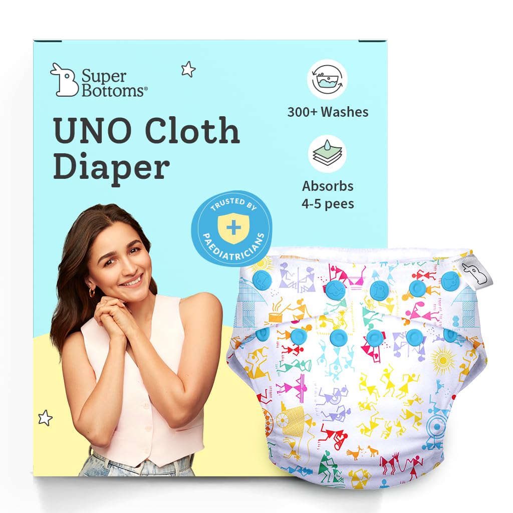 superbottoms UNO Freesize Premium Cloth Diaper for babies (3m-3y) + Organic Cotton Pad | Washable & Reusable 300+ Times | Superior Absorption | Waterproof | Super Soft & Gentle - White-warli, 1 count
