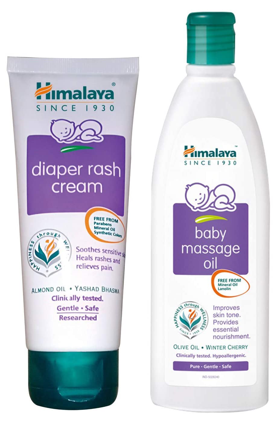 Himalaya Diaper Rash Cream100gmHimalaya's Diaper Rash Cream while promoting effective healing soothes red and irritated skinand forms a protective layer on baby's skin.Apply Diaper Rash Cream on rashes and around the area where the diaper's edges rub against baby's skin.Himalaya Baby Massage Oil (200ml White)Himalaya Baby Massage Oil (200ml White) Promotes Baby's General Growth and Development Improve you little one's general growth and development the Himalaya Herbals baby massage oil 200 ml. Infused with olive oil and winter cherry extracts this Himalaya Herbal oil will nourish protect and soften your baby's skin. The olive oil content which is enriched with Vitamin E protects your baby's skin from chafing. This oil also helps in strengthening your baby's nails and softening cuticles. Enriched with winter cherry this Himalaya baby massage oil has a calming effect on your baby and helps in enhancing your child's skin tone as well. Healthy and Glowing Skin for Your Baby This Himalaya massage oil is sure to provide your baby with healthy and glowing skin. Clinically tested this mild massage oil can be safely used on newborn babies. You can use this light oil to either massage your baby before bath or to moisturise your little one's skin after bath. For best results massage your child with this Himalaya baby oil at least half an hour before bath time. Use this oil on a regular basis to prevent skin dryness. Buy the Himalaya baby massage oil 200ml online to ensure that your baby's skin remains nourished at all times. Ideal for: Nourishing skin and massaging Age: Newborn and up Contains: Olive oil and winter cherry extracts Clinically tested to be mild Content: 200 ml