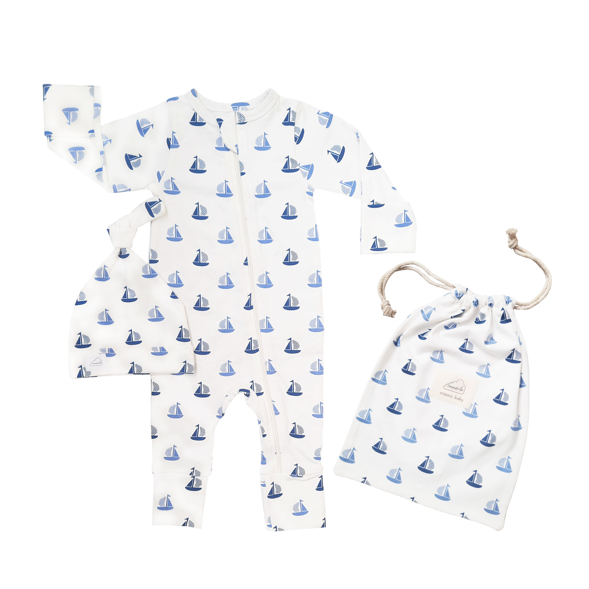 Our super soft zip-up pyjamas will give your baby that sleeping-on-a-cloud feeling. Made with Masilo's dreamy organic cotton for the littlest of sleepers, ages newborn to 6 months. The convertible hands and feet fold over for complete coverage. Or fold them back and let their fingers and toes wiggle free!Your Sweet Dreams Bundle includes1 x One-Piece Zip Pyjamas1 x Top Knot Cap