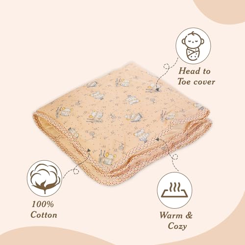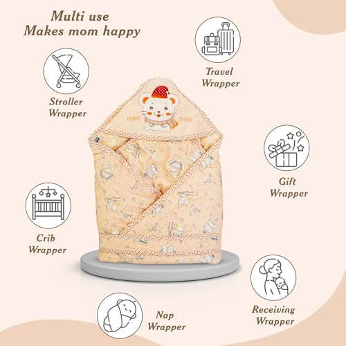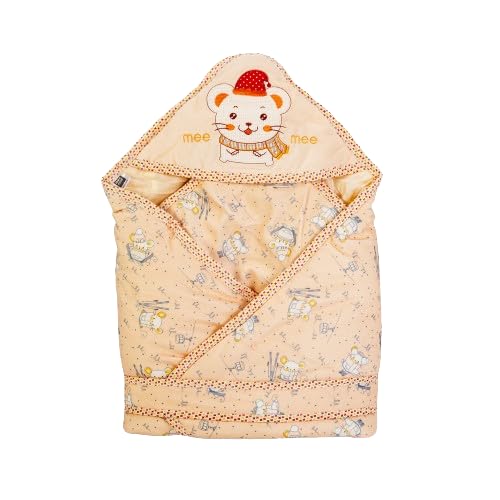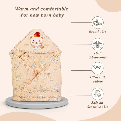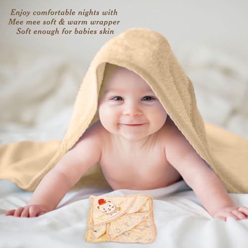 Mee Mee Baby Wrapper with Hood, Teddy Print, Yellow (396.0mm L X 71.0mm W)
