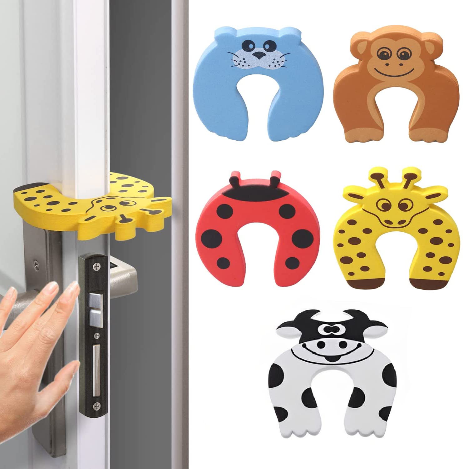 Features: Made of flexible lightweight non-toxic foam material durable and soft to touch. Cute colorful cartoon animal designs that every kids and mums will love them. Specifications: Color: Multicolor Size: 4.1 x 4.1 x 0.5 Inch Material: Foam Notes: This product is applicable door thickness of 25-40mmEasy to use just clip on the door out of reach of your little one. Simply slide the finger protector over the edge of the door high up on the side edge or on the top edge so your child can not reach it. .Stops door from slamming accidently with the foam cushion. Soft flexible material easily attaches to most doors and won't damage doors or frames. Prevent doors and Windows were all of a sudden maintain indoor ventilation cooling prevent the pet is locked in a room etc.