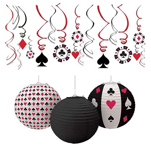 Make Your Birthday Special With Poker Decorations Casino Hanging Swirl And Casino Theme Paper Lantern.