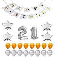 Jindal Party Products Happy Birthday 21th Year Party Balloons Decorations Set(No 21 Silver Foil Balloon+50 Gold & Silver Latex Balloon+1 White Happy Birthday Banner+ 4 Silver Star Foil Balloons)