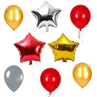 Pack of 6 Golden Silver Red Star Shape foil Balloon with 60 Red Golden Silver Theme Party Decoration & New Year , Christmas , Valentine's Day