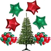 Masti Zone 2 Feet Artificial Xmas Tree/Christmas Tree with 4 Pcs Red Green Star Foil Balloon and 50 Pcs Red Green Latex Balloons Merry/X Mass Christmas New Year Party