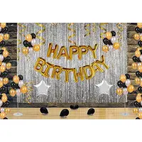 SOI Happy Birthday Letter with Star Foil Balloon and Silver Fringe Curtain Plus HD Metallic Balloons Decoration kit