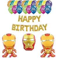 Masti Zone 4 Pcs Super Hero Cartoon Character Foil Balloons With Happy Birthday Foil and 25 Printed Balloons and Mask For Kids,Boys,Girls Birthday Theme Party Decoration (BalloonComboSet 9)