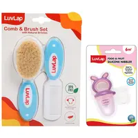 LuvLap Baby Comb with Rounded Tip & Baby Hair Brush with Natural Bristles for Baby Hair Grooming & Better Protection of Baby's Scalp (White & Blue) & LuvLap Bunny Food & Fruit Nibbler
