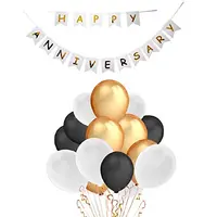 "Happy Anniversary" Celeberation/Decoration Pack (Banner & Balloon)- Gold & Black