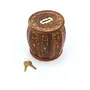 BIJNOR - METAL INLAY IN WOOD Wooden Piggy Bank Round Shape Carving Piggy Bank for Boys Girls and Adults Adult Piggy Bank Wooden Coin Bank Coin Box Money Bank for Coins and Money for Kids Money Box