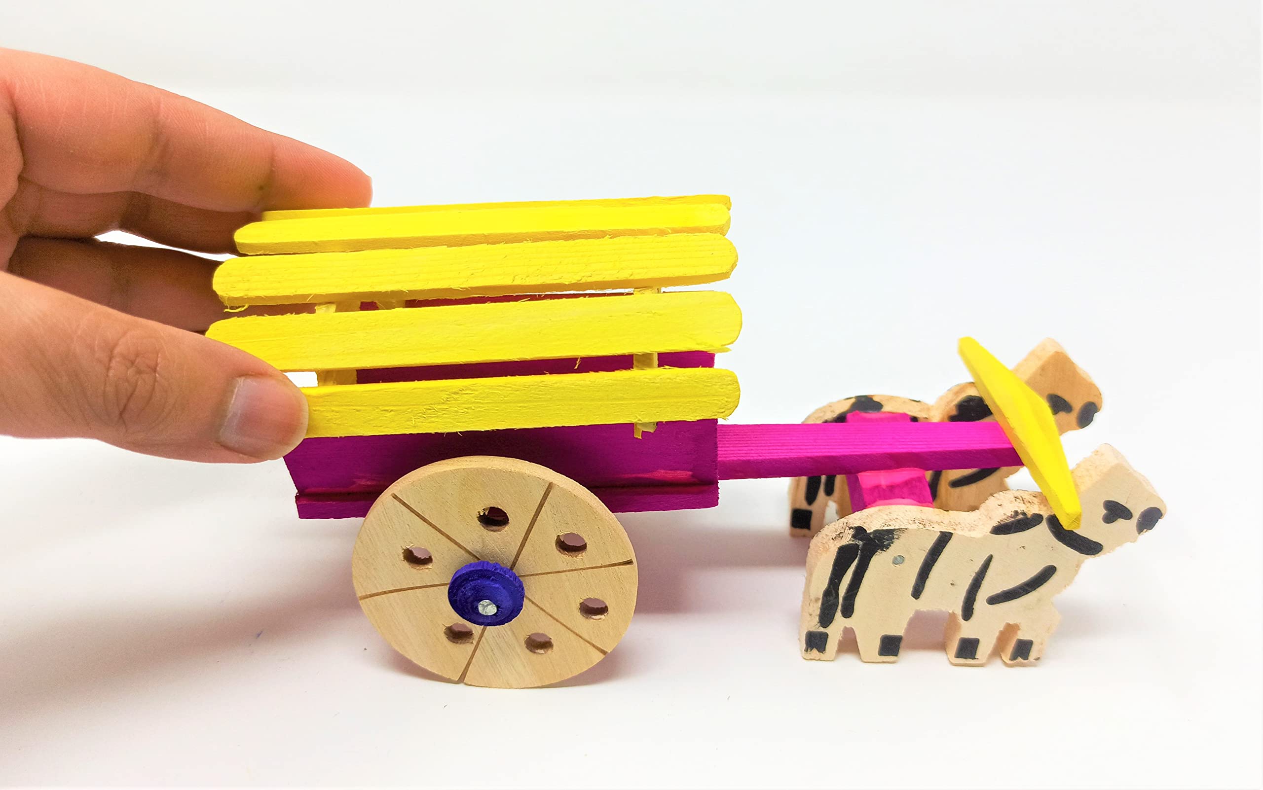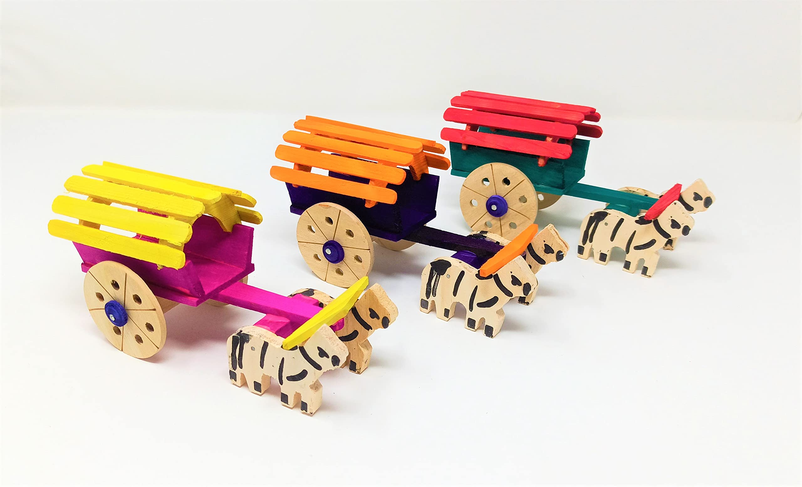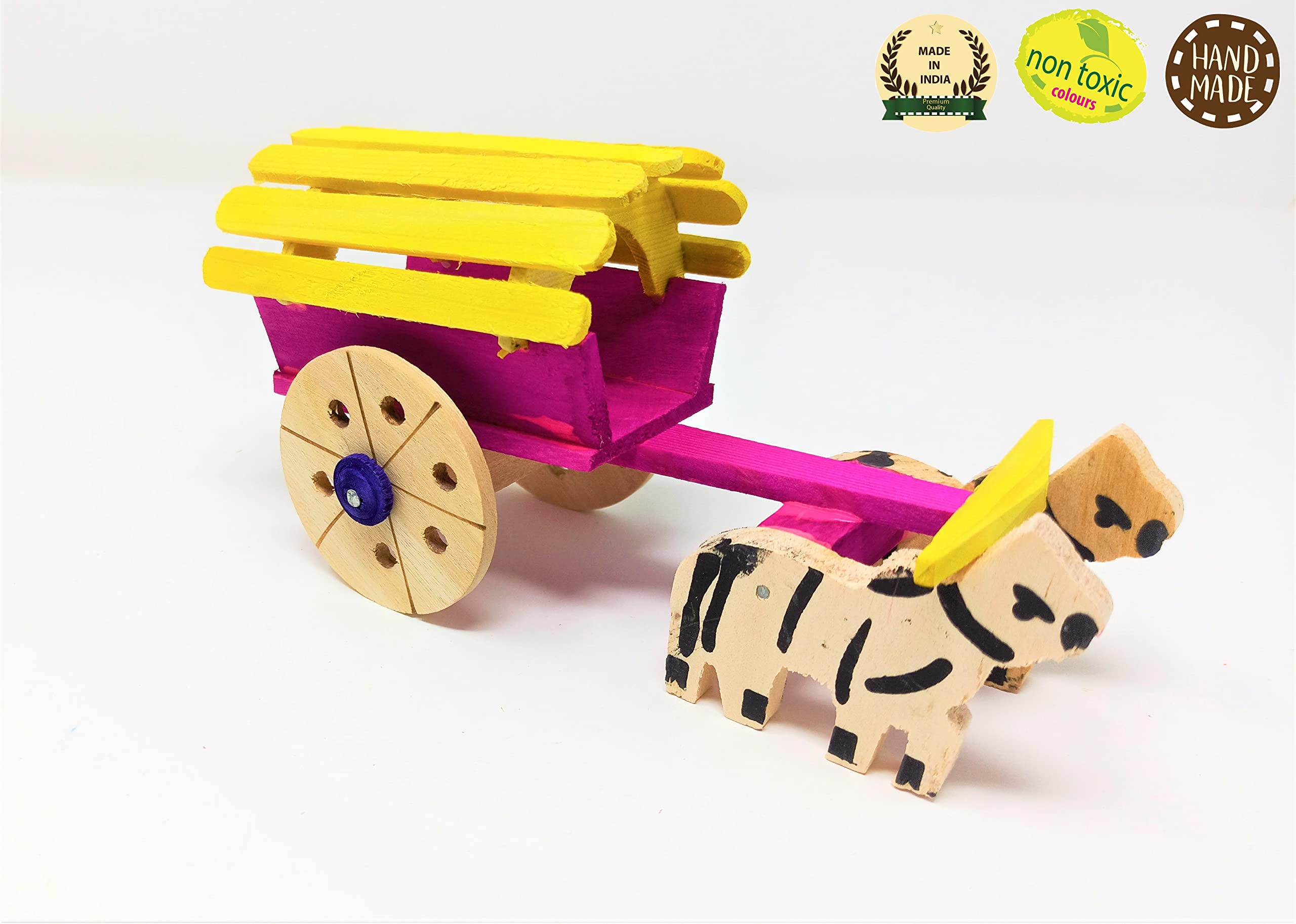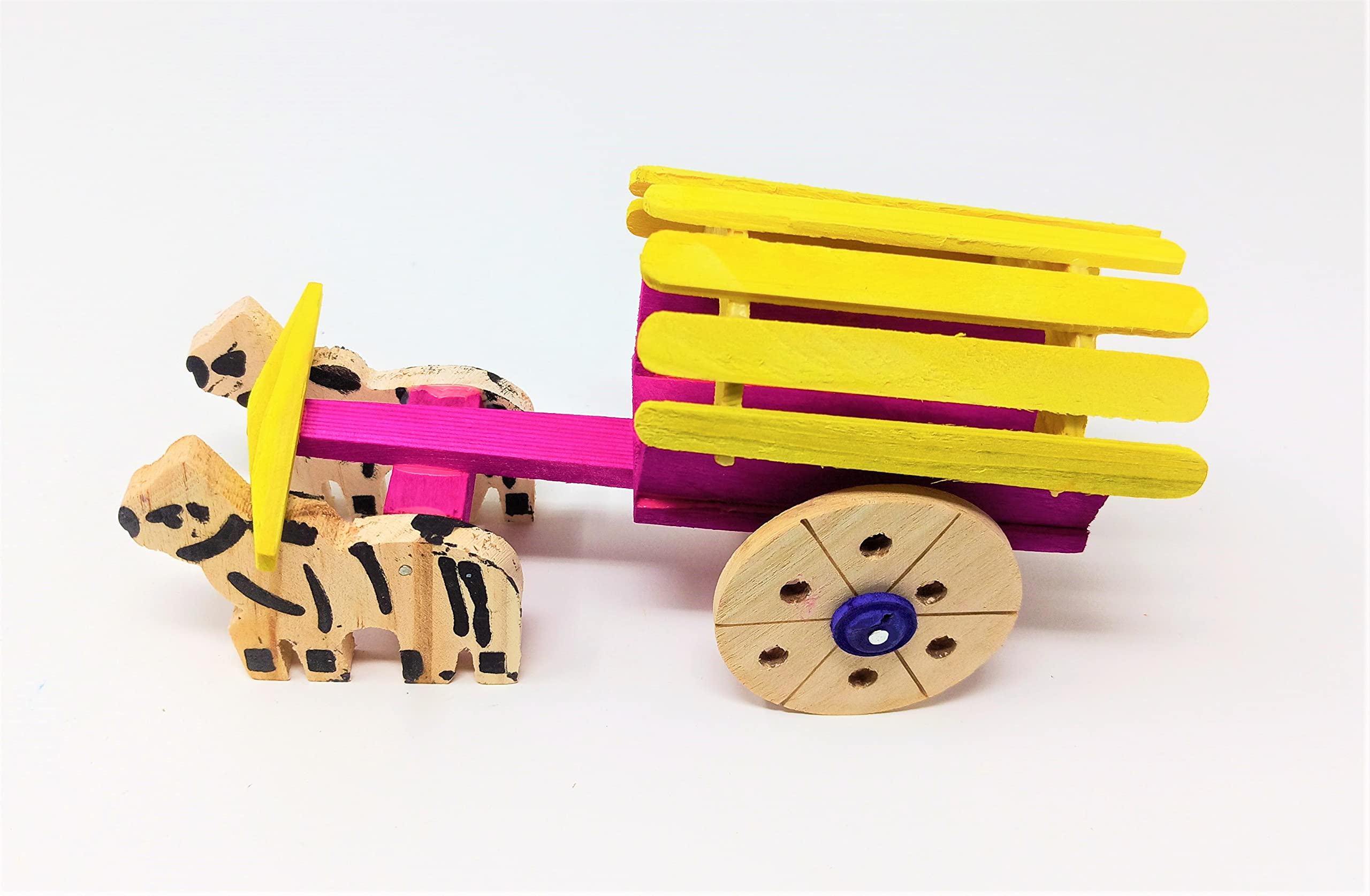 This Wooden Pretend Play Bullock Cart toy is a perfect toy for hours of playing. Let the little hands unleash the fun with this cute Pretend Play toy. It focuses on gross and fine motor skills. This helps little ones to be more active and helps them in their physical growth. These wooden toys have been handcrafted by the Artisans of "Channapatna".This traditional craft is protected as a geographical indication (GI) under the World Trade Organization. It is Made from the Natural Vegetable Coloring Dyes.Non-Toxic.Made in India with Love.
