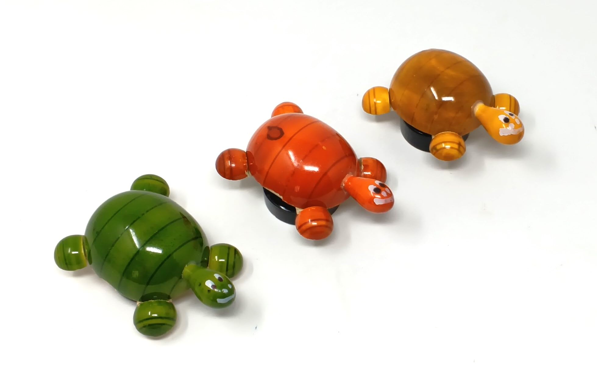 This spring head turtle is a good positive vibe toy for the young ones.So play with it or put it in your Car. These wooden toys have been handcrafted by the Artisans of "Channapatna".This traditional craft is protected as a geographical indication (GI) under the World Trade Organization.It is Made from the Natural Vegetable Coloring Dyes.Non Toxic.Made in India with Love.This toy helps kids in developing Gross and Fine Motor Skills.